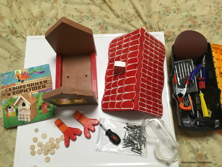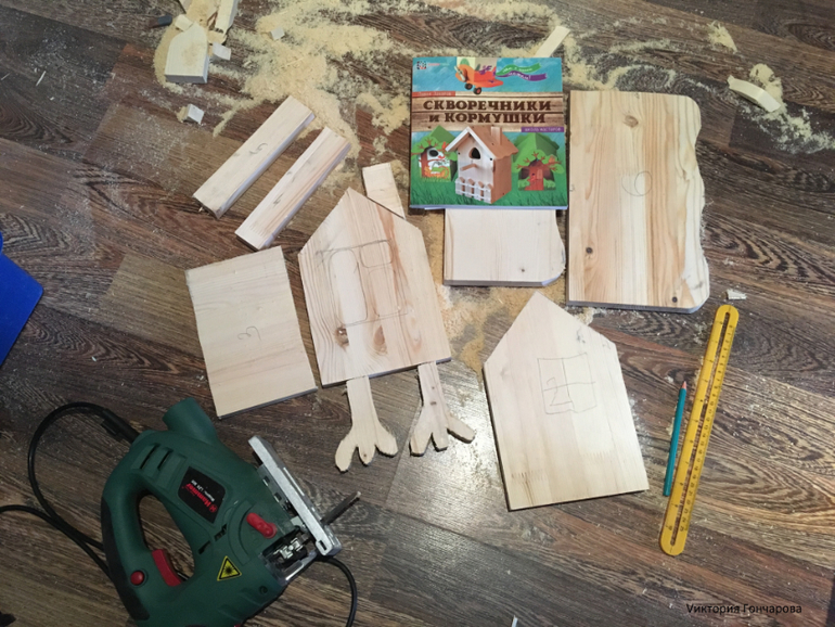 Кстати идею взяли из книги "Скворечники и кормушки. Мы с папой можем" (правда у нас вышло мы с мамой можем)))))). Очень понравилась книга,есть все рекомендации по предварительным работам,необходимому инструменту и поэтапной схеме работ.