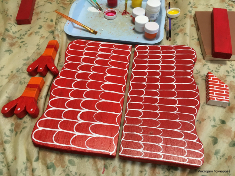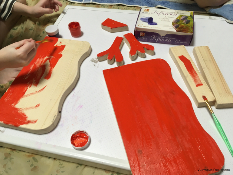 Пару слоев акриловой краски, рисование деталей, и последний слой - акриловый лак для завершеющих работ.
