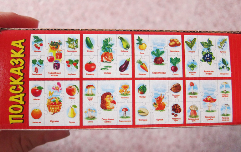 На волне любви к игре "Профессии" решила взять из этой же серии (серия называется "Умные игры") еще одну игру. Приглянулась мне игра "Дары природы". В ней помимо стандартных понятий "Фрукты/овощи/ягоды/грибы", есть "орехи" (не часто их встретишь!), а еще не просто ягоды, а деление на съедобные и несъедобные, а также деление овощей на овощи и корнеплоды. Очень интересная подборка, согласитесь?