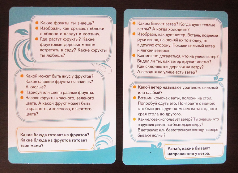 На обратной стороне карточек вопросы, игры, эксперименты, предложения узнать что-то новое.