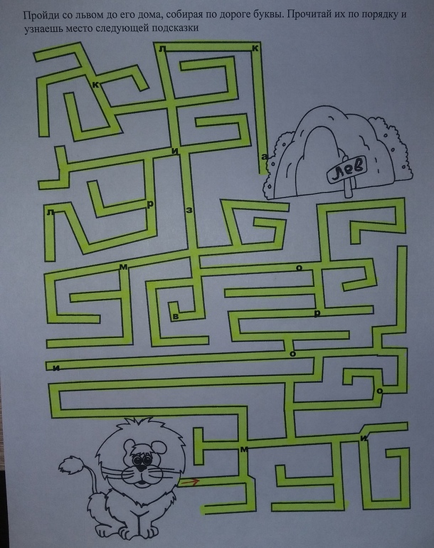 За подушками дивана еще один лабиринт, пройдя который выстраивается из букв "морозилка":