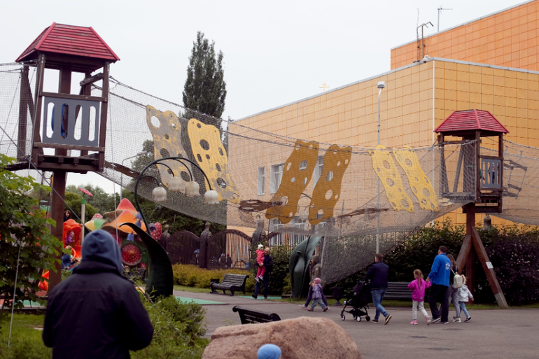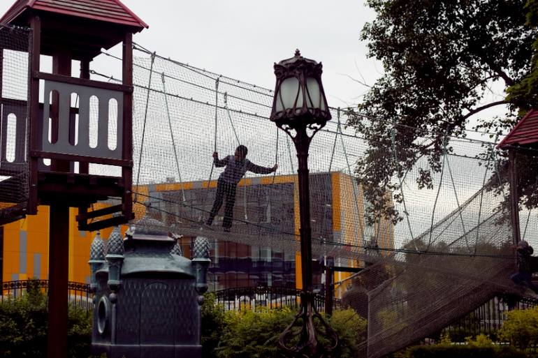 Мы в первую попытку когда не попали, пошли гулять по кварталу и нашли шикарную площадку с "паутинами" (фото с интернета) Шикарная площадка, народу было полтора человека, все в очереди остались)))) а мы реально наслаждались, но площадки классные!