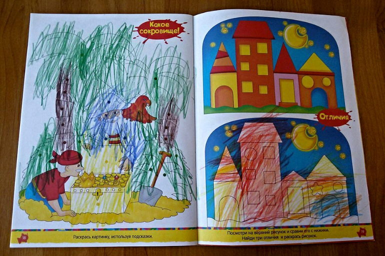 Задания специально подобраны и соответствуют заявленному возрасту. Практически со всеми упражнениями трехлетний сын справился сам. Проходил лабиринты, обводил по точкам и пунктирам, клеил фигуры, соединял линиями связанные между собой предметы, раскрашивал и находил отличия.