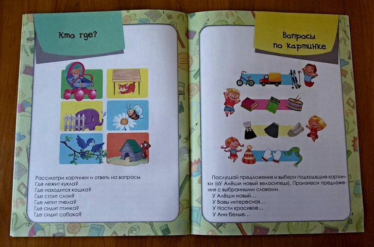 Все задания в тетради устные. Мы периодически берем ее вечером в кровать и заново проговариваем все упражнения, повторяя и закрепляя таким образом полученные знания.
