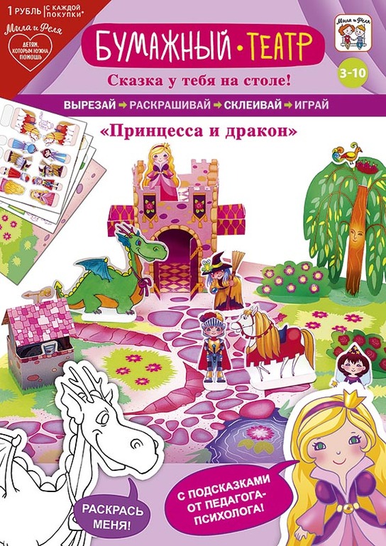 Не так давно мы купили два варианта Бумажного театра в Пятерочке - "Волшебный лес" и "Принцесса и дракон". Производитель издательство Арт дизайн серия "Мила и Феля". И так уж нам понравился этот театр, что я от всей души рекомендую вам купить, склеить и играть, если вдруг вы увидите его в продаже.