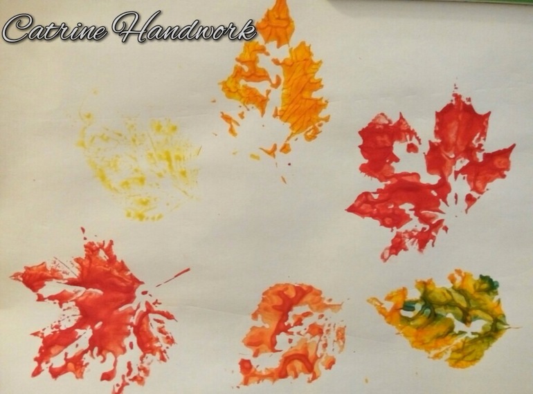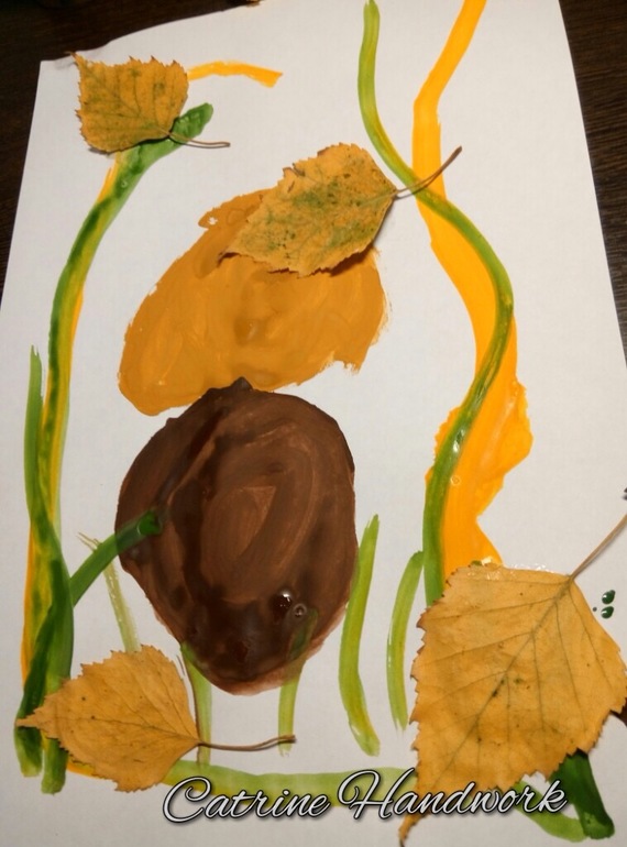 Алгоритм действия прост, красим листочки красками и прикладываем на белый лист