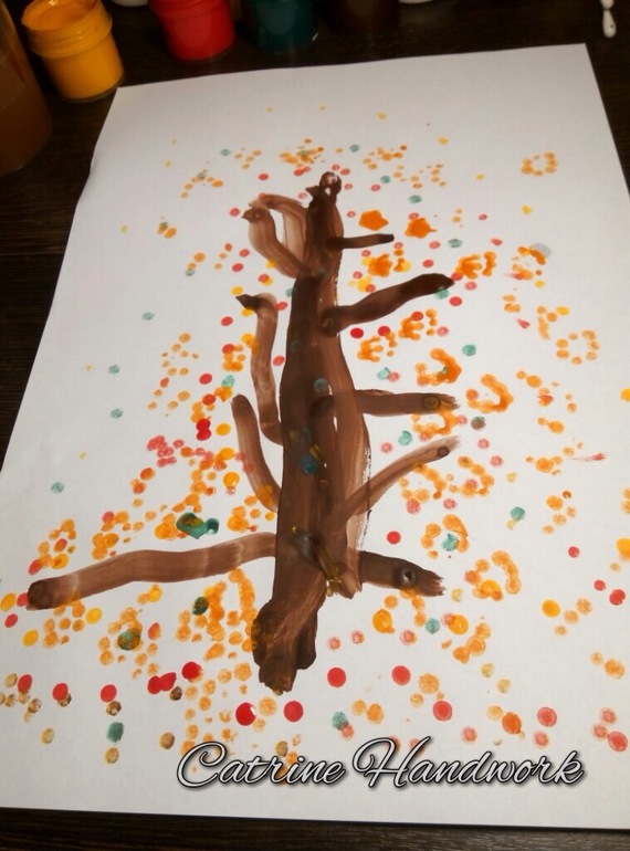 5. Осеннее дерево, рисование в нетрадиционной технике. Рисование ватными палочками.