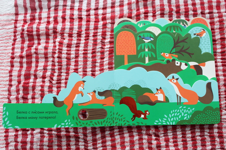 Разница в сюжете: в "Прятках в океане" черепашка просто путешествует со страницы на страницу, здесь - уже цельный сюжет. Бельчонок ищет маму, которую, конечно же, найдет на последнем развороте.