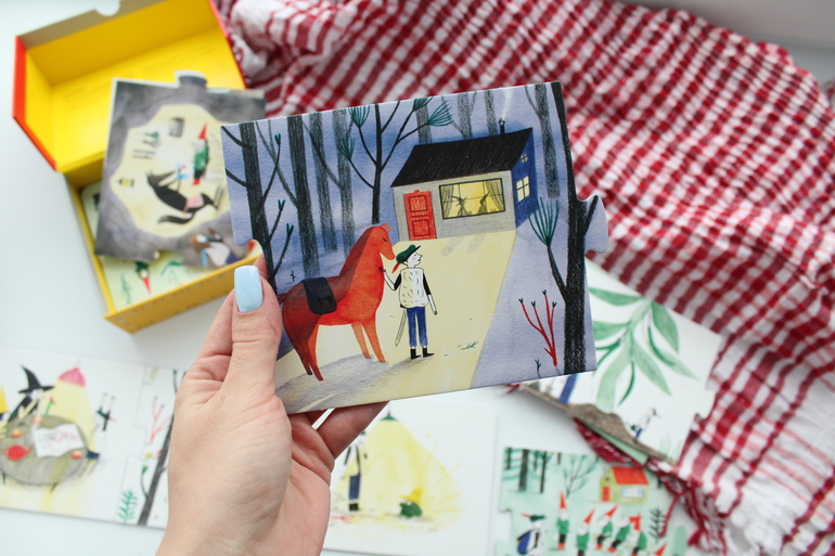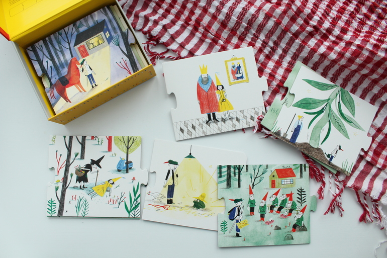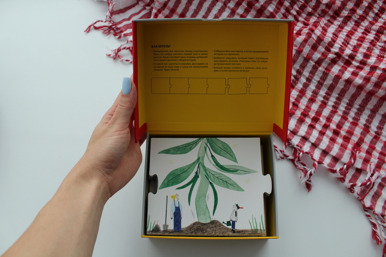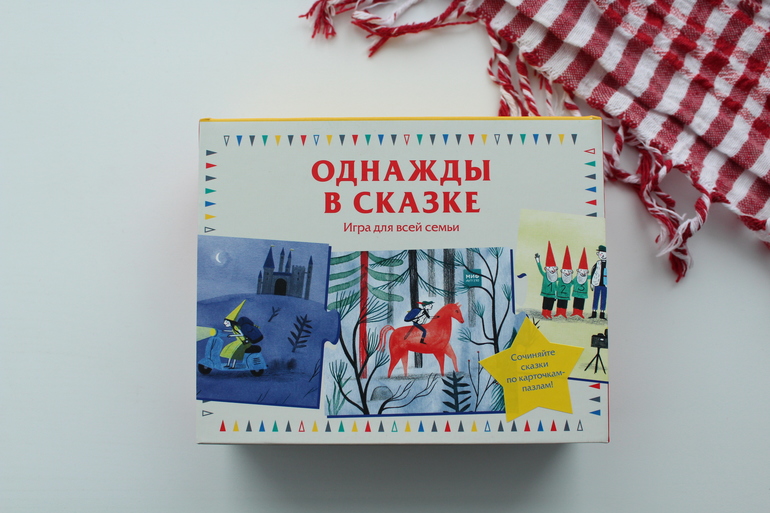 Эта игра уже для более молодых игроков - от 3 лет и старше. Она имеет дидактическую направленность: не секрет, что составление связного рассказа по картинке является важным навыком, вызывающим затруднение у многих детей. Эта игра предлагает формировать данный навык, сочиняя множество новых сказок.