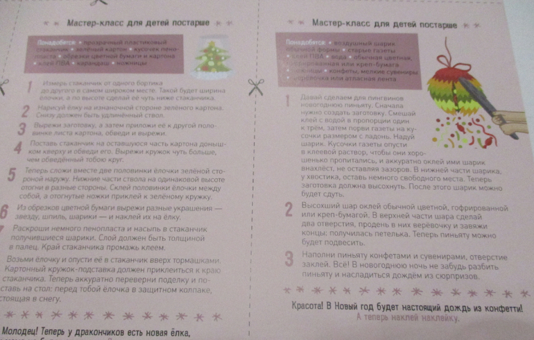 Задания в этом адвент-календаре больше ориентированы на девочек. Девочки любят мастерить, украшать, помогать маме приготовить новогоднее печенье или сладить мороженое. Все задания в календаре очень творческие и интересные. Каждому окошку и животному, живущему в окошке подходит свое задание.