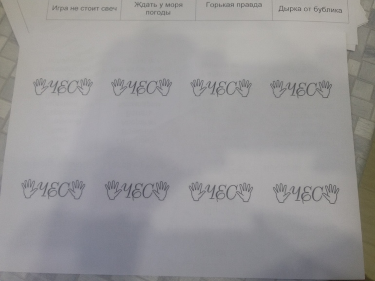 Карточки сделаны в таблице Word: