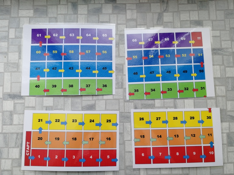А в качестве фишек для игроков можно использовать цветные пуговки, прилипал (очень удобно на улице), камушки или просто мелкие личные вещи. Кто угадал первым слово, тот двигает свою фишку на 1 клеточку. За угадывание пословицы - на 2. Играют все по очереди, пытаясь объяснить все слова с одной карточки. Выигрывает тот, кто первый дойдет до финиша.