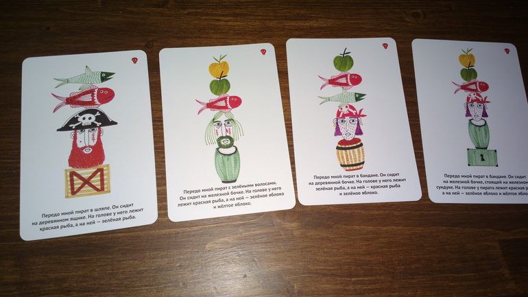 Карточки 2 уровня сложности отличаются наличием 2-х пиратов и большим количеством предметов.
