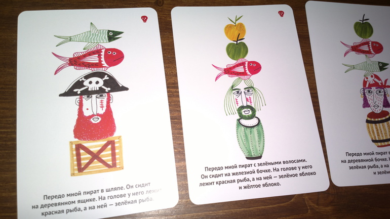 Карточки 3-го уровня сложности уже не содержат описания, ведущему необходимо самому описать увиденное.