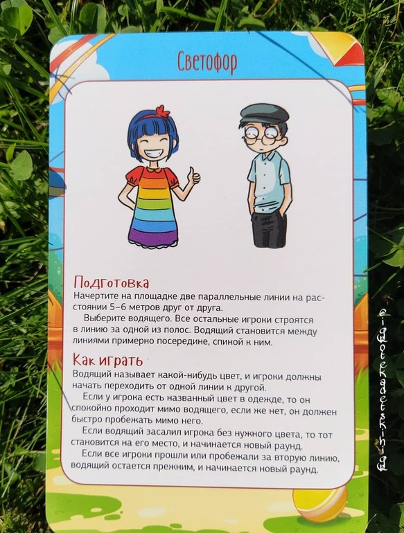 Игроки, у кого этот цвет есть в одежде, спокойно проходят мимо водящего. А вот у кого нет - пытаются пробежать мимо. Водящий старается осалить таких игроков и тогда уже осаленный игрок занимает место водящего.