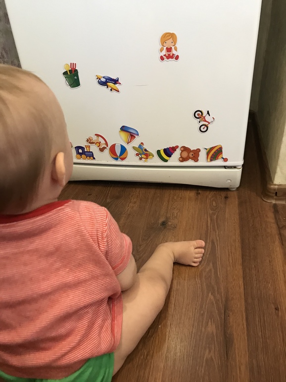 Иногда развлекаем на кухне детскими магнитами на холодильник: