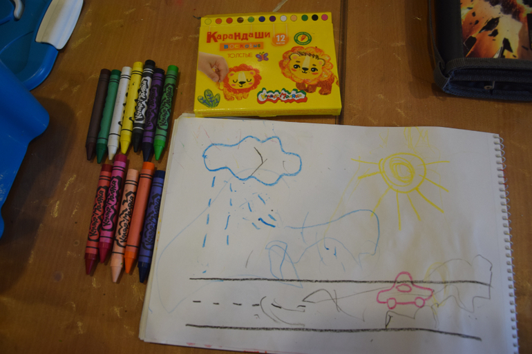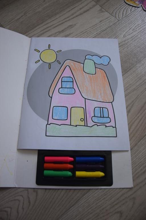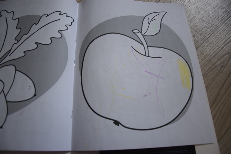 И разукрашки у нас тоже плохо идут. Прикупила одну хорошую, крупные детали. Пока никак. И мелками тоже не очень