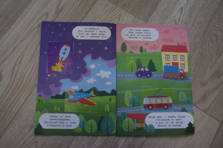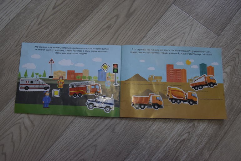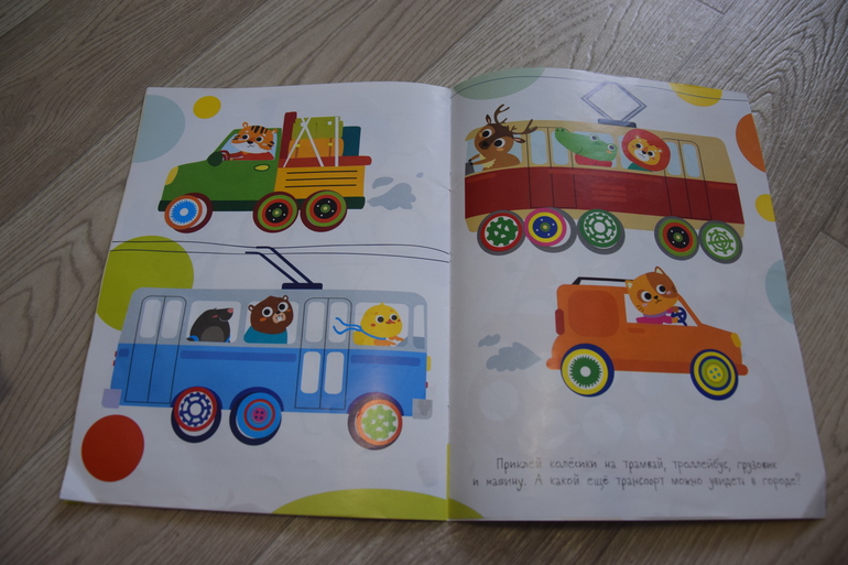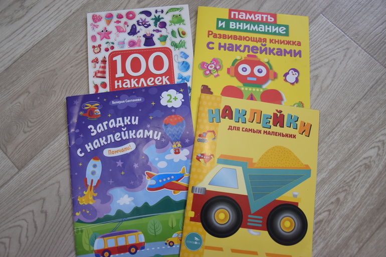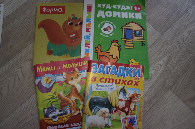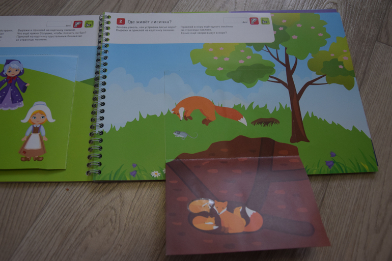 Очень понравилась вот такая книжка. На постарше я думаю, много приходится Саше помогать. Тут и вырезать, и клеить, и дополнять наклейками аппликации. Пару заданий только сделали.