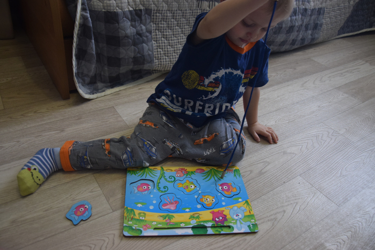 Ещё отличная игра "Рыбалка". Ловим рыбки и медузу для Саши, брата, папы и мамы. Иногда читерим и поддерживаем веревку другой рукой.