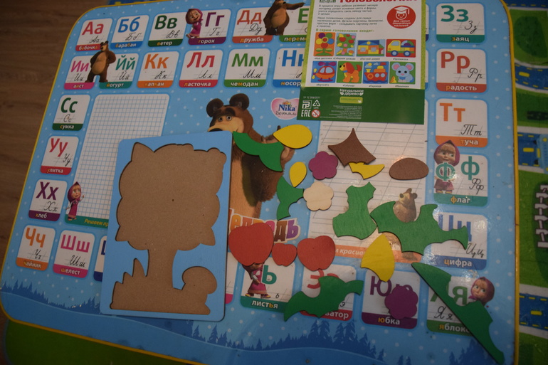 А вот с деревом всё сложнее. Я, взрослый человек не могу крону собрать. Не очень на мой взгляд продуманная вырубка. Ребенку 2-х лет очень сложно. Сама собираю крону,а ребенок цветочки-яблочки-листики,грибок,травку. Уже ножку от гриба потеряли: