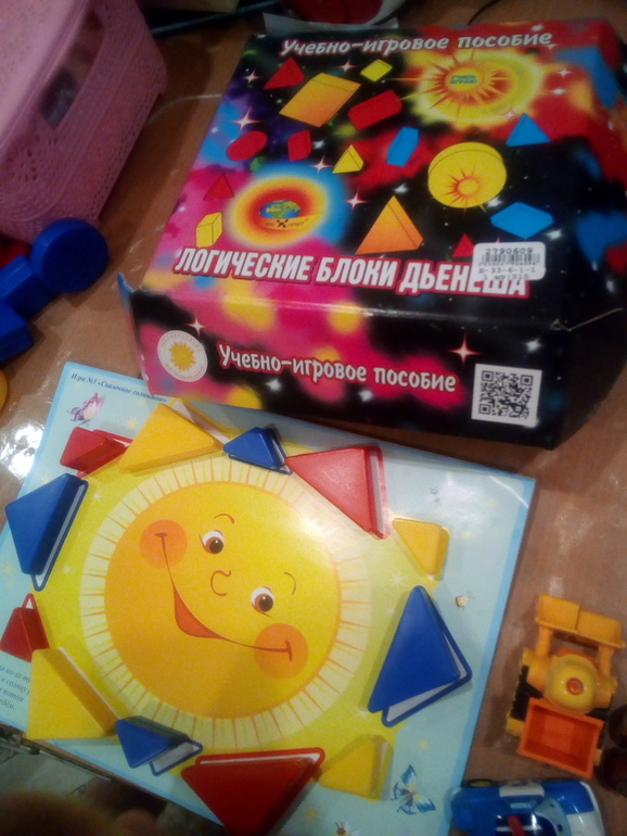 Многим известны эти блоки. Три цвета:синий, желтый,красный. Четыре вида фигур:квадрат, прямоугольник, треугольник и круг. Разные по размеру (маленькие и большие) и по толщине (толстые и тонкие).