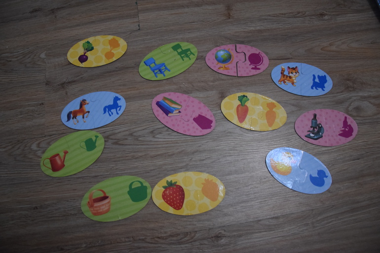 Попробовала купить маленькую (из 4-х элементов) запоминалку (мемори). Запомнил первый раз, что где находится (картинки), перевернули, он всё правильно открыл, когда просила его показать, где вертолет, самолет и пр.. Когда поменяла местами-ошибался, так как цвета не запомнил, какая машина какому цвету соответствует. В общем пока не очень понятно нам это задание. Надо потренироваться ещё.