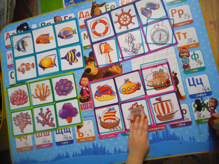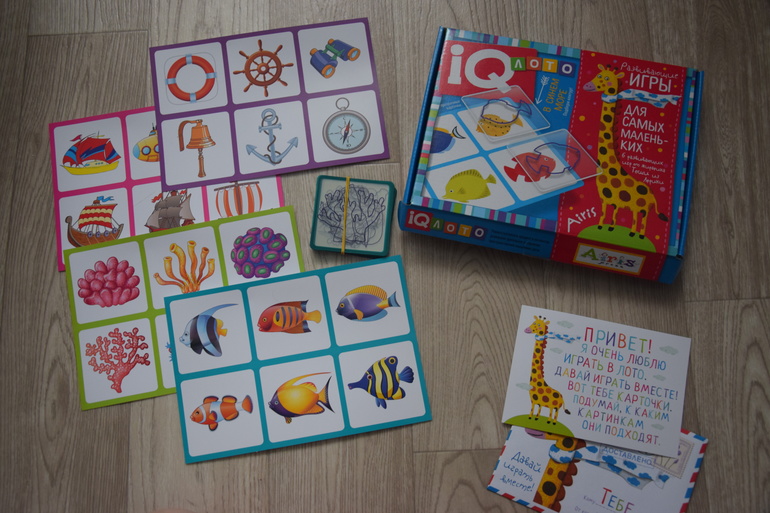 Ещё из этой же серии занимаемся лото-контуры. "В синем море-подбери контур". Легко получились морская атрибутика и рыбки. Водоросли и корабли сложнее. Понравилось. Опять же есть лишние карточки. Есть конвертик с приветственным письмом. Можно играть так: положить в конверт шесть карточек и предложить ребенку установить все карточки на свои места (это для самых маленьких).