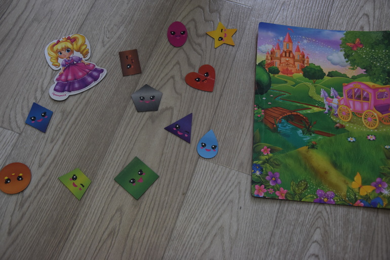 Раз уж речь зашла про формы, покажу полотно на магните. Приклеиваем и на холодильник фигуры, изучаем, повторяем.