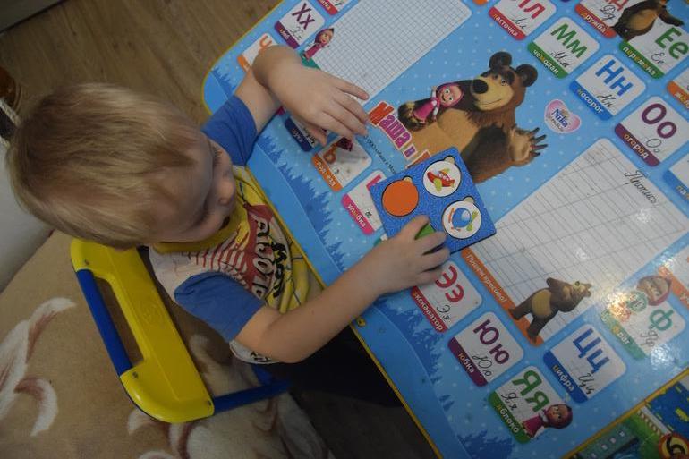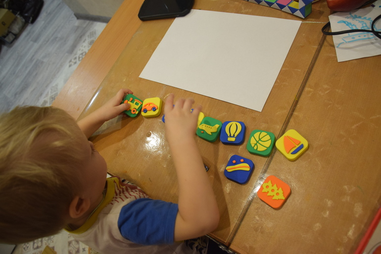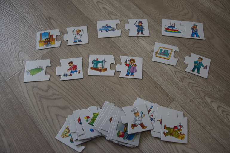 И ассоциации "Профессия". Саша не всё знает и понимает, но многое складывает - пожарную, скорую, полицию, футболиста и пр.