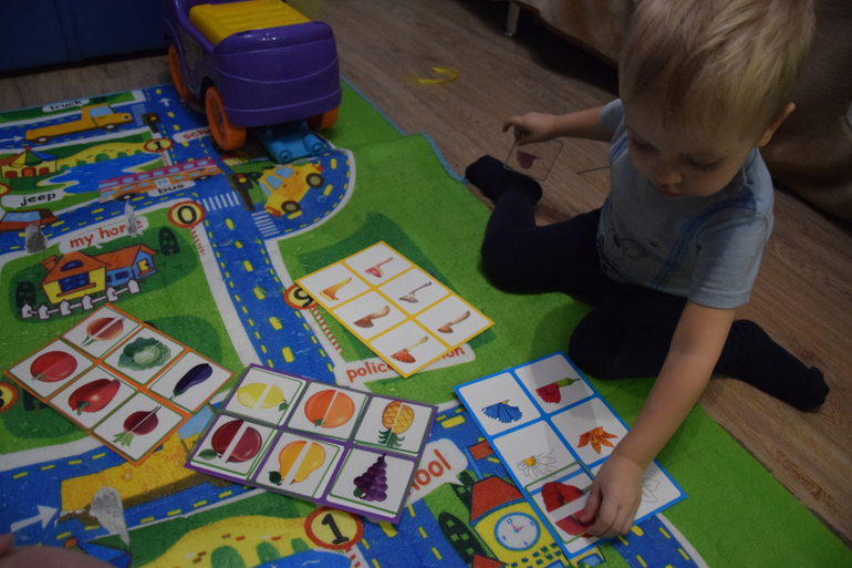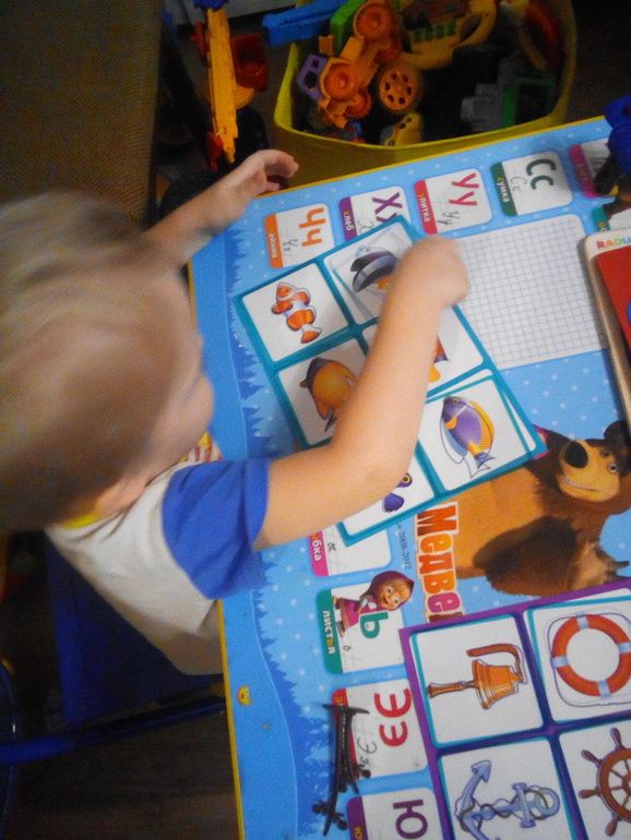 Лото. Начали в него играть в саду в 2,2 года. Достала Димкино наследство, ещё и прикупила одно лото. Очень нравится,занимается.