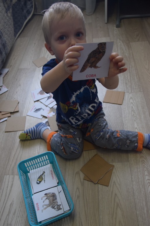 Карточками Домана занимаемся. Не по системе, просто рассматриваем, проговариваем, запоминаем. Прошу его из кучи найти того-то того или просто спрашиваю "Это кто, что?"
