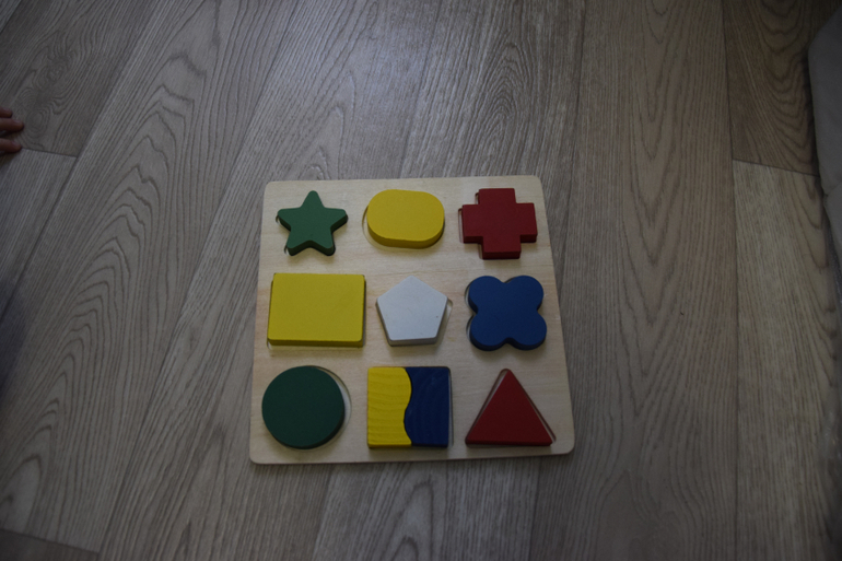 Цвета и формы тоже изучаем с помощью деревянных вкладышей.