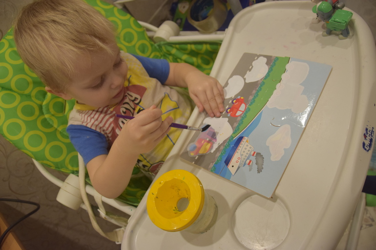 Можно, что угодно рисовать: дым у парохода, капельки дождя, море для рыбки, зернышки для курочки. В интернете идей масса!