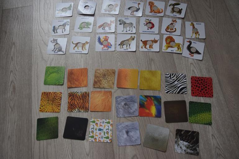 Предлагаются животные(птицы,насекомые) с дыркой. И под это дырочку подобрать нужную карточку-раскраску. Очень Саше понравилась! Немного путались с лисой/рысью, есть пара карточек почти одинаковых, но в целом классная игра на внимание и логику!Советую!
