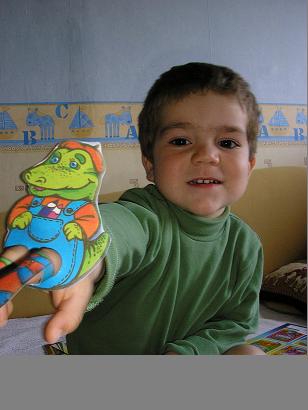 Вот уже 2 дня Даську не оторвать от любимых зверушек, особенно его радует, что у них "есть ножки", и они умеют ходить и танцевать :).