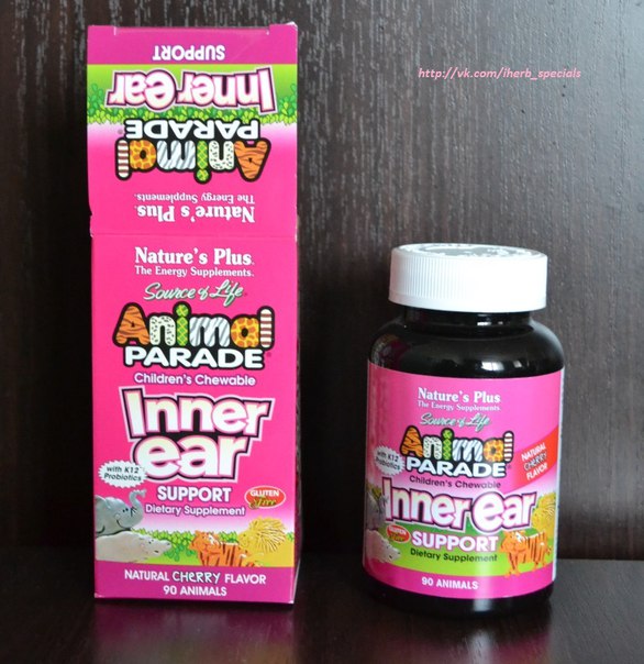 С началом сезона простуд хочется отметить специализированный детский «узкопрофильный» пробиотик для поддержки функций носоглотки и внутреннего уха Nature's Plus, Source of Life, Animal Parade, Children's Chewable Inner Ear Support, Natural Cherry Flavor, 90 Animals - как обычно у данного бренда, это ароматные фигурки животных розового цвета с вкусом, нравящимся детям.