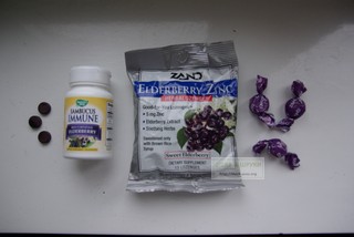 Nature's Way, Sambucus Immune, Bio-Certified Elderberry Lozenges, 30 Lozenges скорее это все-таки таблетки, а не леденцы. В составе: эхинацея, цинк, бузина, витамин С. В день взрослым принимать по 1 - 2 шт., детям по 1 штуке. У нас в семье эти таблетки очень "уважает" ребенок. Они кисленькие и красят весть рот (а если специально облизывать, то и губы) в синюшный цвет. Потом можно пугать друзей на детской площадке :) Во время болезни прием их прекращаем т.к. в составе 167% суточной нормы витамина С, чтобы не было передозировки вкупе с другими БАДами. Пьет их, скорее для профилактики (наряду с колострумом), реальный лечебный эффект оценить сложно.
