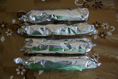 Нарезаем фольгу ( или пищевую пленку) и выкладываем на них сладкую массу. Закручиваем а-ля суши-роллы