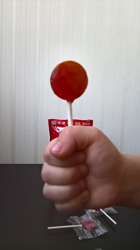 - в пакетике 15 леденцов на палочке 4-х разных вкусов : персик, клубника, вишня, гранат.