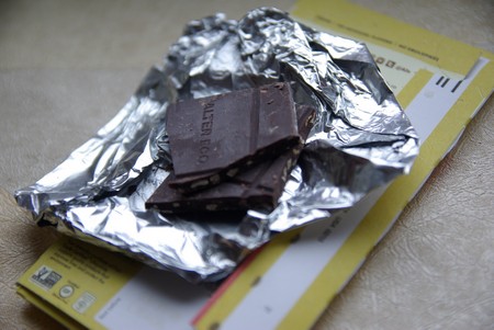 Во-вторых, не вкусный. Ни тебе аромата, ни терпкости 60% какао, как кусок пластмассы жуешь. На разломе видны белые вкрапления, но вкуса орехов они не имеют. Может быть, это потому что плитка сама тонкая и орехи размолоты очень мелко, не знаю.