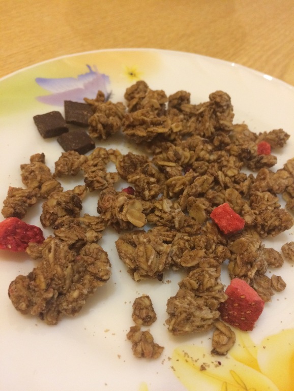 Клубника и шоколад присутствуют незначительно, но прекрасно дополняют хлопья. С йогуртом очень нежно хрустит. 👍
