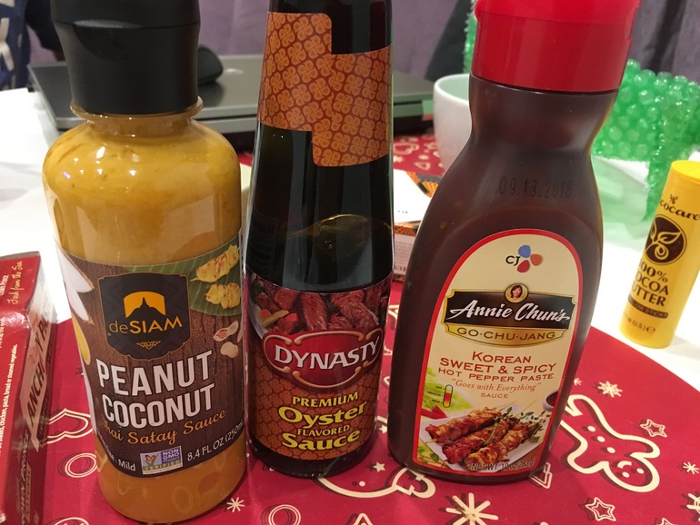 Соусы : арахисово кокосовый, из устриц , корейский кисло сладкий ( сууупер острый )