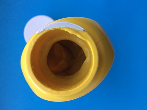 До конца горчица из банки не вытряхивается, так как оседает на стенках , приходилось откурчивать крышку и шурудить там ложкой )))