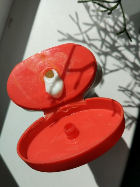 Крем упакован в большой плотный пластиковый флакон с флип-топ крышкой. Скребок для нанесения и снятия крема в комплекте не прилагается, а зря. Хорошо, что у меня остался скребок от Veet.