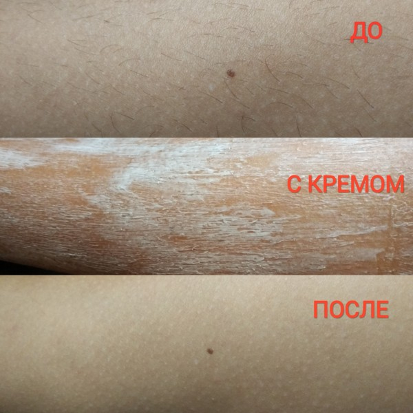 Крем белого цвета, густой, неоднородный. Поначалу пахнет приятно, а когда принюхаешься, явственно ощущается химозный запах аналогичного крема Veet.