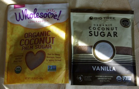 Если коричневый тростниковый сахар у нас представлен в сетевых магазинах, то вот кокосового я не встречала, поэтому и приобрела следующие экземпляры.