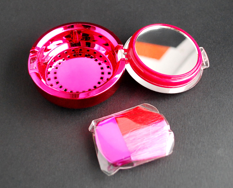 Следует особо отметить дизайн румян. Их приятно держать в руках, дизайн доставляет эстетическое наслаждение и восторг. Кейс компактный, крепкий, функциональный, продуманный до мелочей. Прочные замок и крепления. Футляр имеет второе отделение под румянами, в котором хранится кисточка, с обратной стороны емкости с румянами - зеркальце. Коробочка выглядит очень симпатично, по девчачьи мило, приятный ярко-розовый переливчатый цвет - завораживает. Сами румяна имеют тисненный орнамент в виде сердечек. Орнамент сохраняется на протяжении почти всего времени пользования.