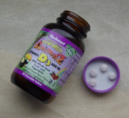 Сыну 11 лет, принимает мультивитамины курсами, поэтому взяла в минимальной дозировке Bluebonnet Nutrition, Super Earth, Rainforest Animalz, Vitamin D3, Natural Mixed Berry, 400 IU, 90 Chewable Tablets