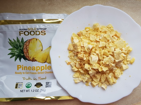 Относительно недавно на сайте появились сушеные California Gold Nutrition, Сублимированный ананас, готовые к употреблению ломтики,