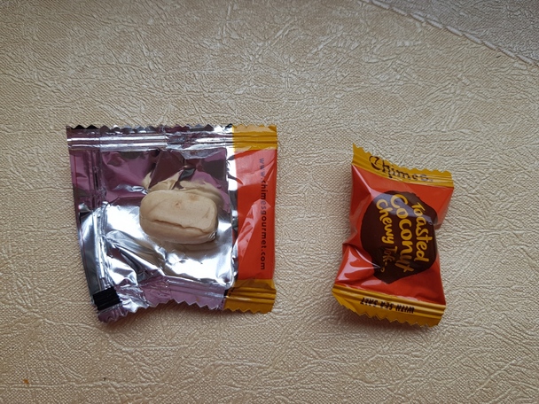 " Мы берем свежевыжатое кокосовое молоко и готовим его с карамелизированным тростниковым сахаром, чтобы создать поджаренную ириску, которая будет танцевать танго на вашем языке" . Собственно после прочтения этой информации на сайте, я и сделала заказ )) Советую попробовать, прикольные конфетки.